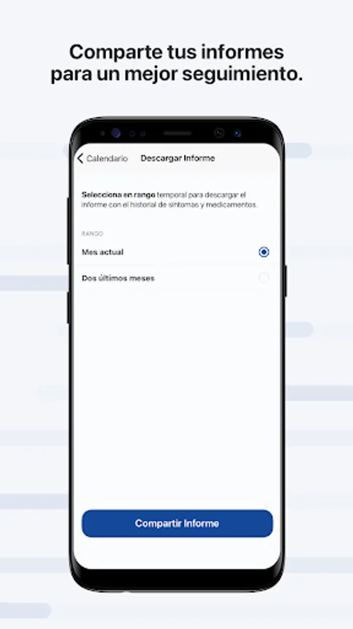 • Consultar el historial personalizado con toda la información introducida, compartir o descargar el informe para enviarlo a tu médico o farmacéutico.