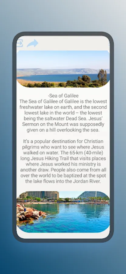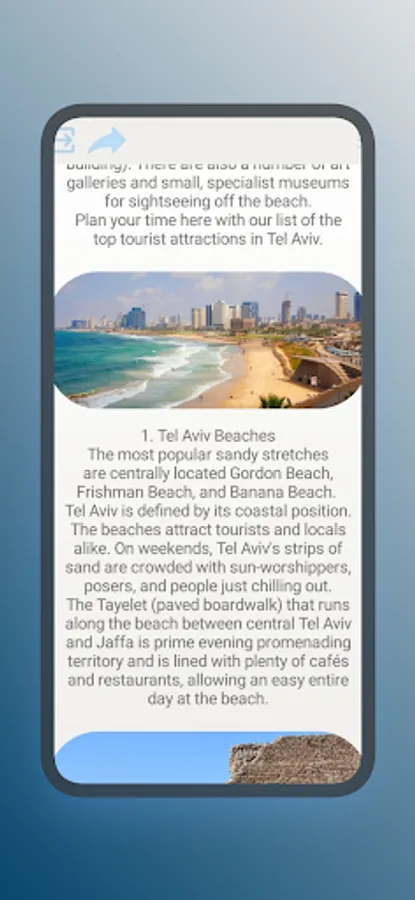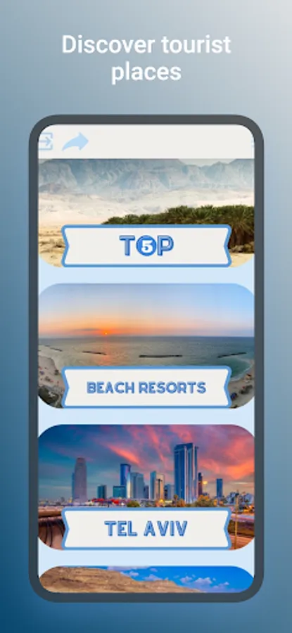 Tourism in Israel, where the application offers some distinctive places and areas to visit in Israel, including therapeutic and medical places, summer resorts scattered on the beaches, natural springs, the city of Tel Aviv, historical sites and cultural heritage, where the rich cultural heritage of Israel is a major attraction for tourists, as museums and galleries display the country's rich history and art . The country is also known for its religious significance, with sites such as the Church of the Holy Sepulchre and Al-Aqsa Mosque attracting millions of pilgrims and tourists every year.