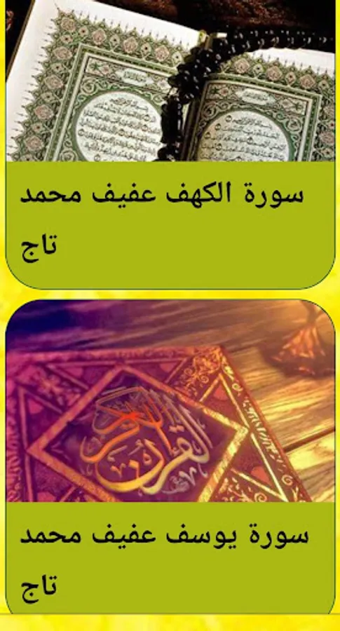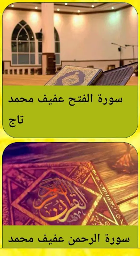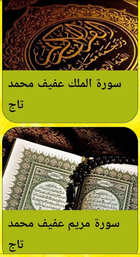 We present to you our application, the reciter Afif Muhammad Taj without the net. Hear and download the Noble Qur’an with the voice of the reciter Afif Muhammad Taj, which is characterized by a sophisticated and soft voice.