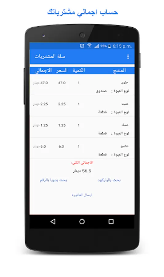 One of the advantages of the application is the ability to create an invoice and review your purchases in terms of price and quantity before heading to the point of payment, or review the total bill according to your budget.