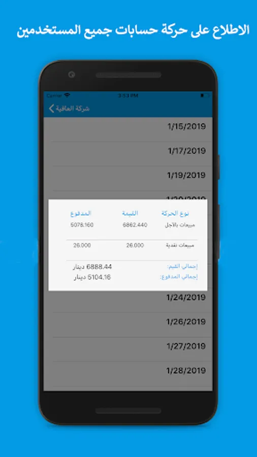 This app works with Accountant 3 system for managing commercial activities in Libya, Egypt and Qatar. It provides the following services: