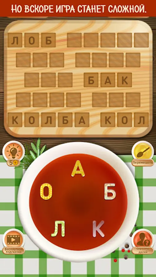 Play words from letters. For example, from the four letters "O R B D" collect the words BOR, ROD, BROD. The more letters you have on your plate, the more difficult it is to collect all the words. If you are unfamiliar with any of the guessed words, just click on it and you will receive an explanation. Thus, a word game will not only help train your brain with puzzles, but will also replenish your knowledge box.