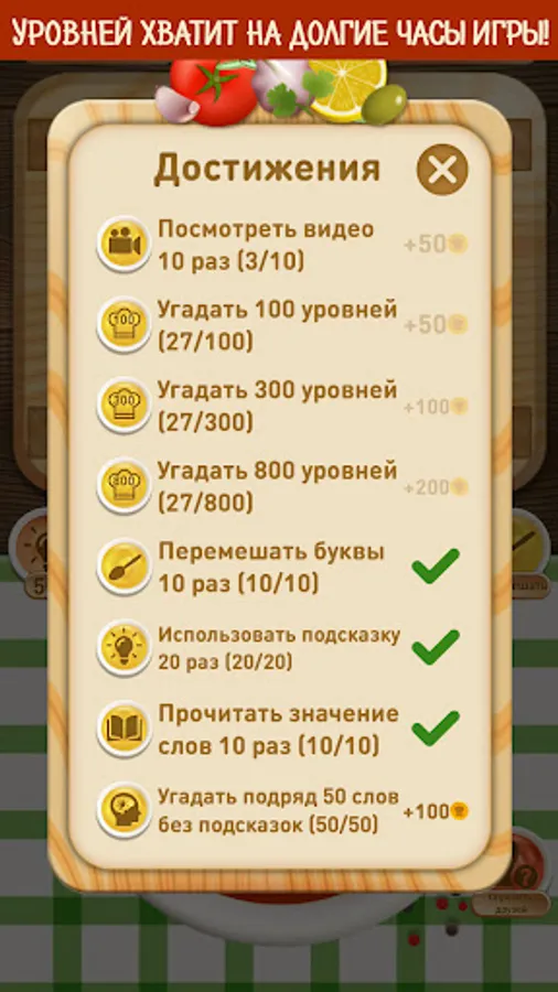 The word game works without internet. Improve your vocabulary, test your attentiveness and ingenuity. A huge number of levels will be enough to while away your free time. The game contains ads and in-app purchases.