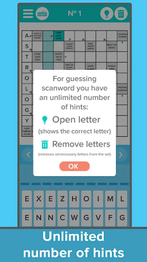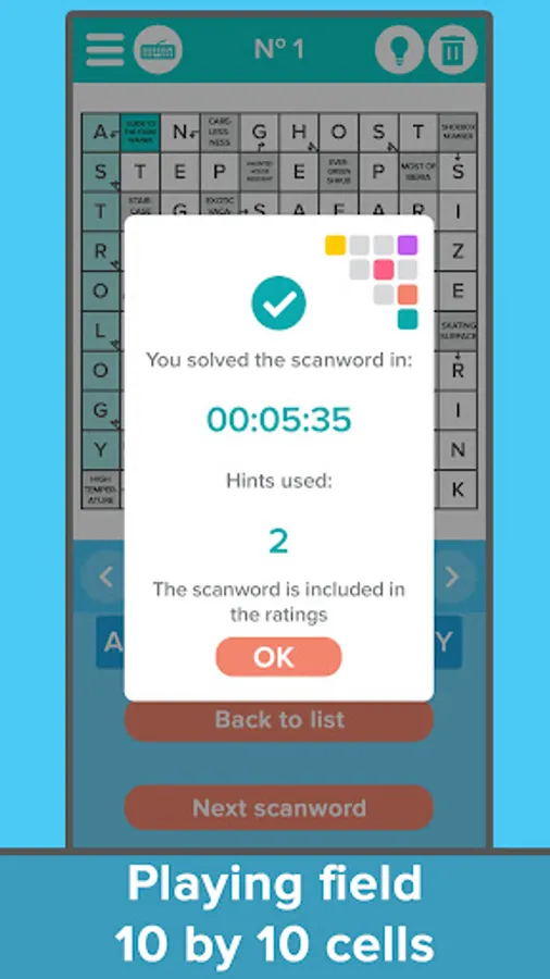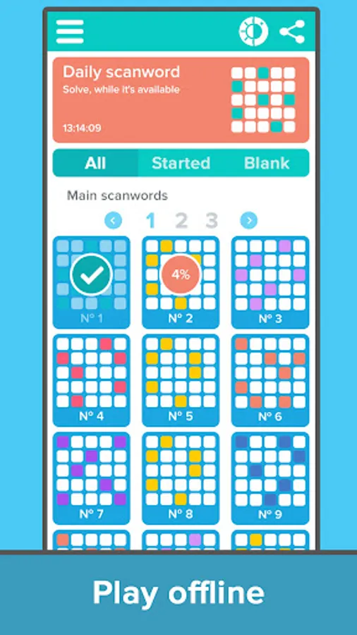 Collection of scanwords without the Internet, puzzles for every day. Spend time with the benefit of the mind, check your erudition, find out all the questions and answers. Play for fun and without limits: you can start solving any scanword and use an unlimited number of clues.