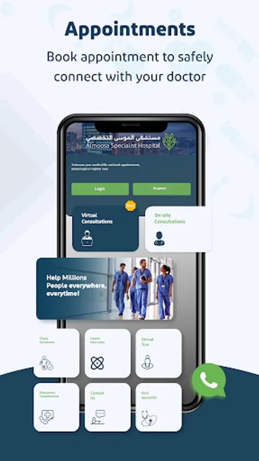 Almoosa Health Group App is designed for your convenience and comfort. As a leader in person-centered care, we continue to offer patients and their families an exceptional patient experience starting from pre-hospital to arrival; including booking and registration or using the latest technologies such as virtual consultations or online payment.