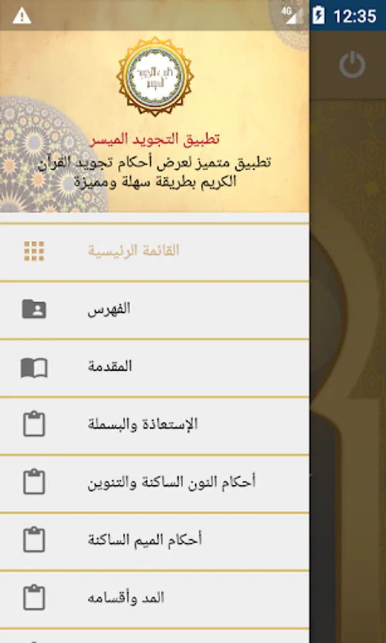 A distinguished application to display the provisions of recitation of the Noble Qur’an in an easy and distinctive way
