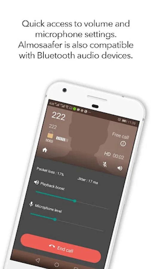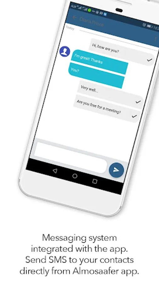 • Unlimited FREE encrypted HD quality voice calls, SMS and video calls between Almosaafer users.