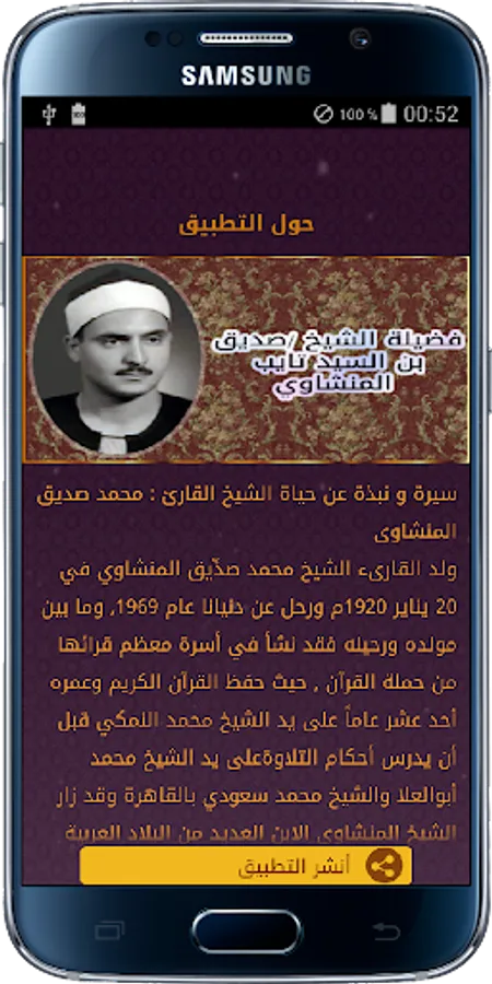 • Listen to the holy quran by shaikh Mohamed Siddiq El-Minshawi mp3 in background .