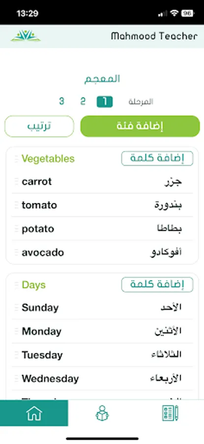 בגרסת התלמידים קיים מאגר של 1200 מילים באנגלית, מחולקות לקטגוריות ורמות קושי.