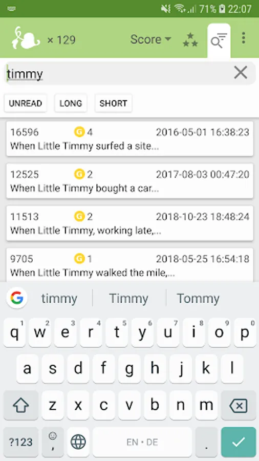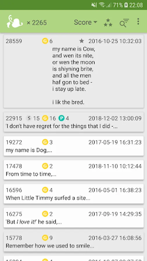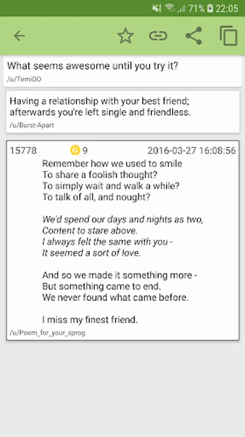 Tap a poem once to show the full text and a second time to view its parent comments.
