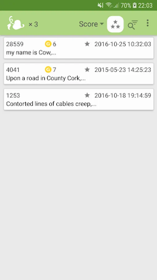 You can save poems to your favorites to find them again later by tapping the star icon on the individual poem page. Use the three star icon on the main page to view all your favorites.