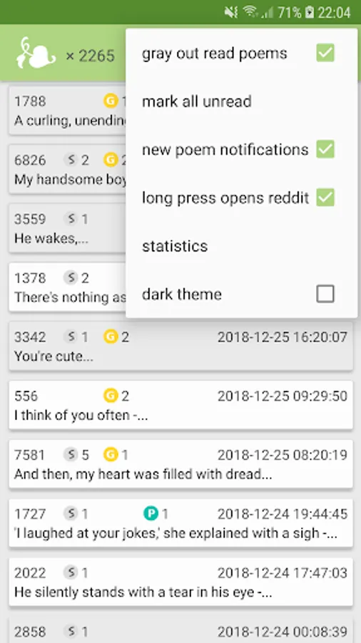 Already read poems are grayed out by default. This can be disabled in the overflow menu (the three dots in the top right).