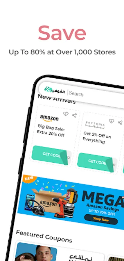 Get the best discount coupons APP and save up to 80% on favorite stores like Amazon, Noon, Shein, AliExpress and more.