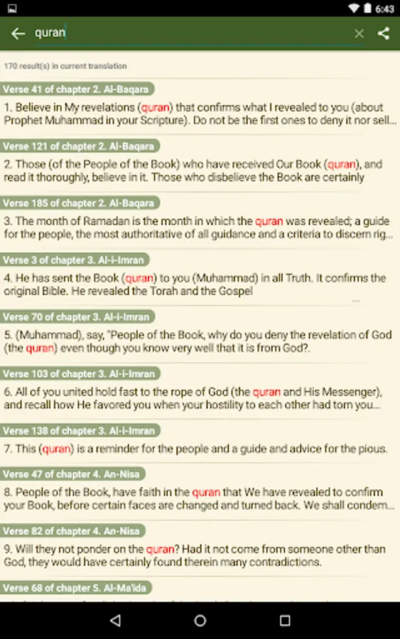 Introducing a highly optimised, full featured and searchable Holy Quran application for Android devices. alQuran allows you to read the entire Holy Quran and its translations and commentary in various languages. Listen to verse by verse recitation and recitations of various other famous reciters. Search text and translations of the Holy Quran quickly and easily.