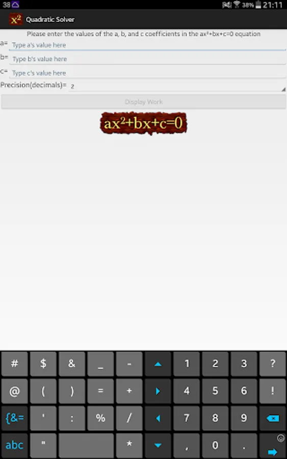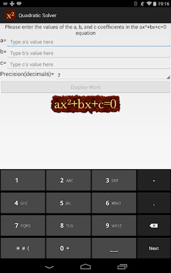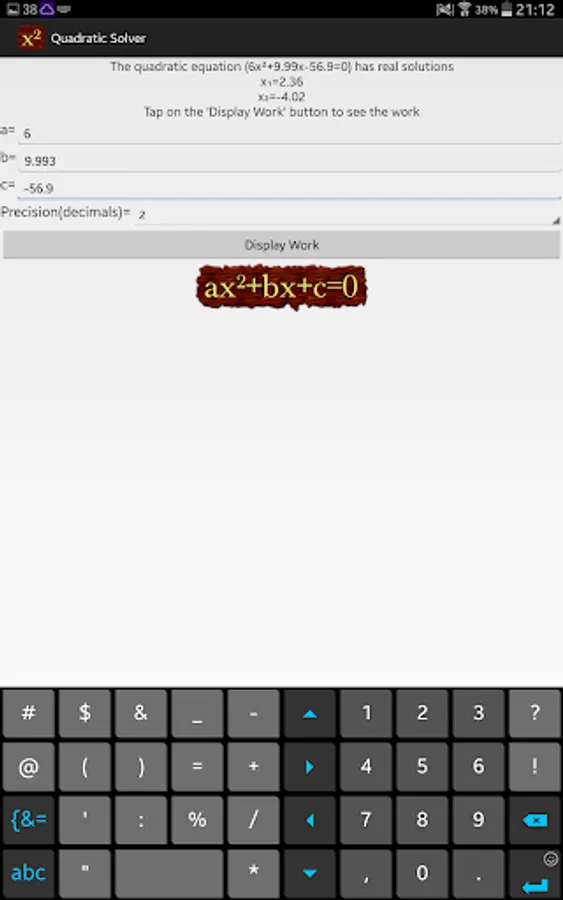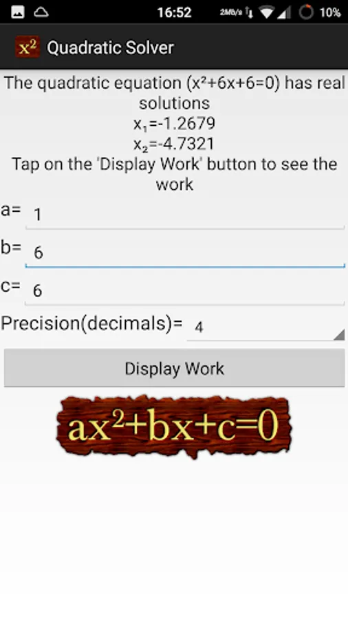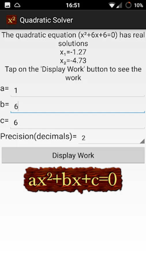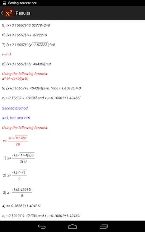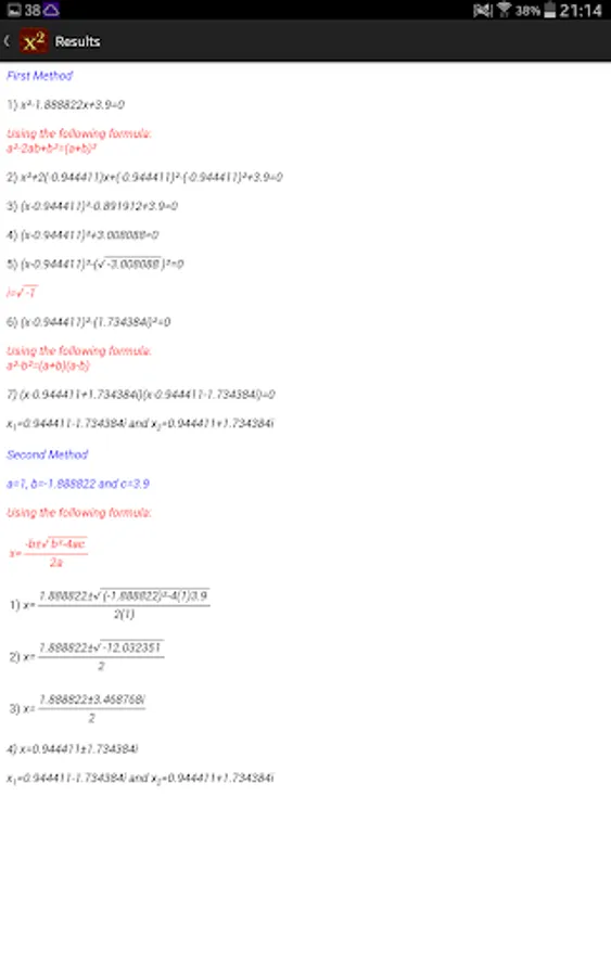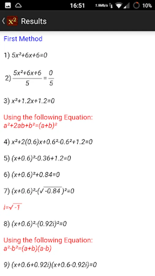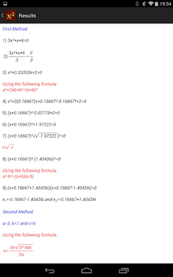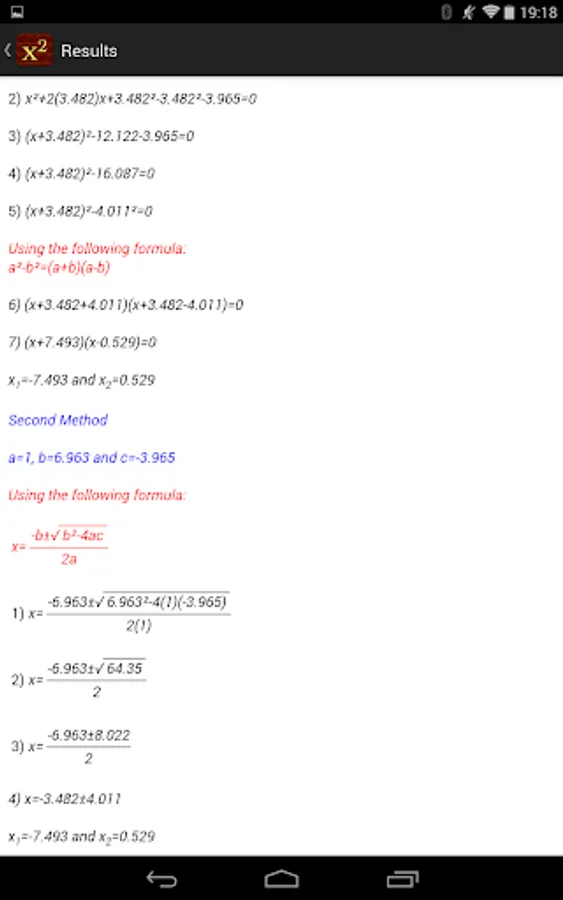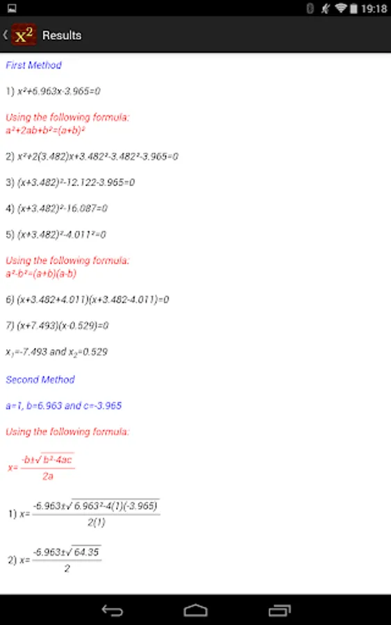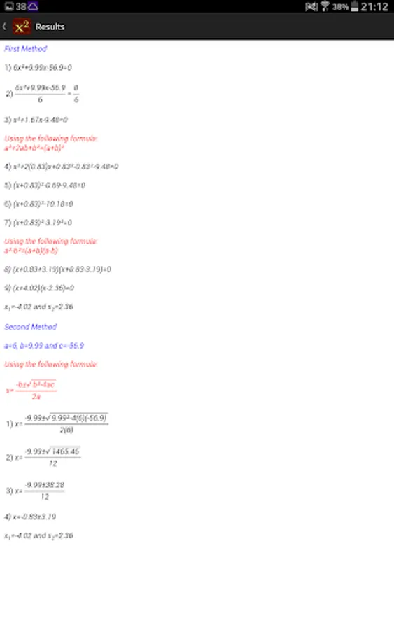 Quadratic Equation Solver shows you the steps to solve a quadratic equation using two independent methods.