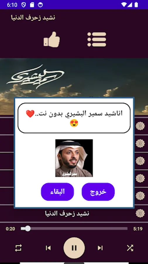 • The feature of adding the songs of Samir Al-Bashiri to the list of favorites
