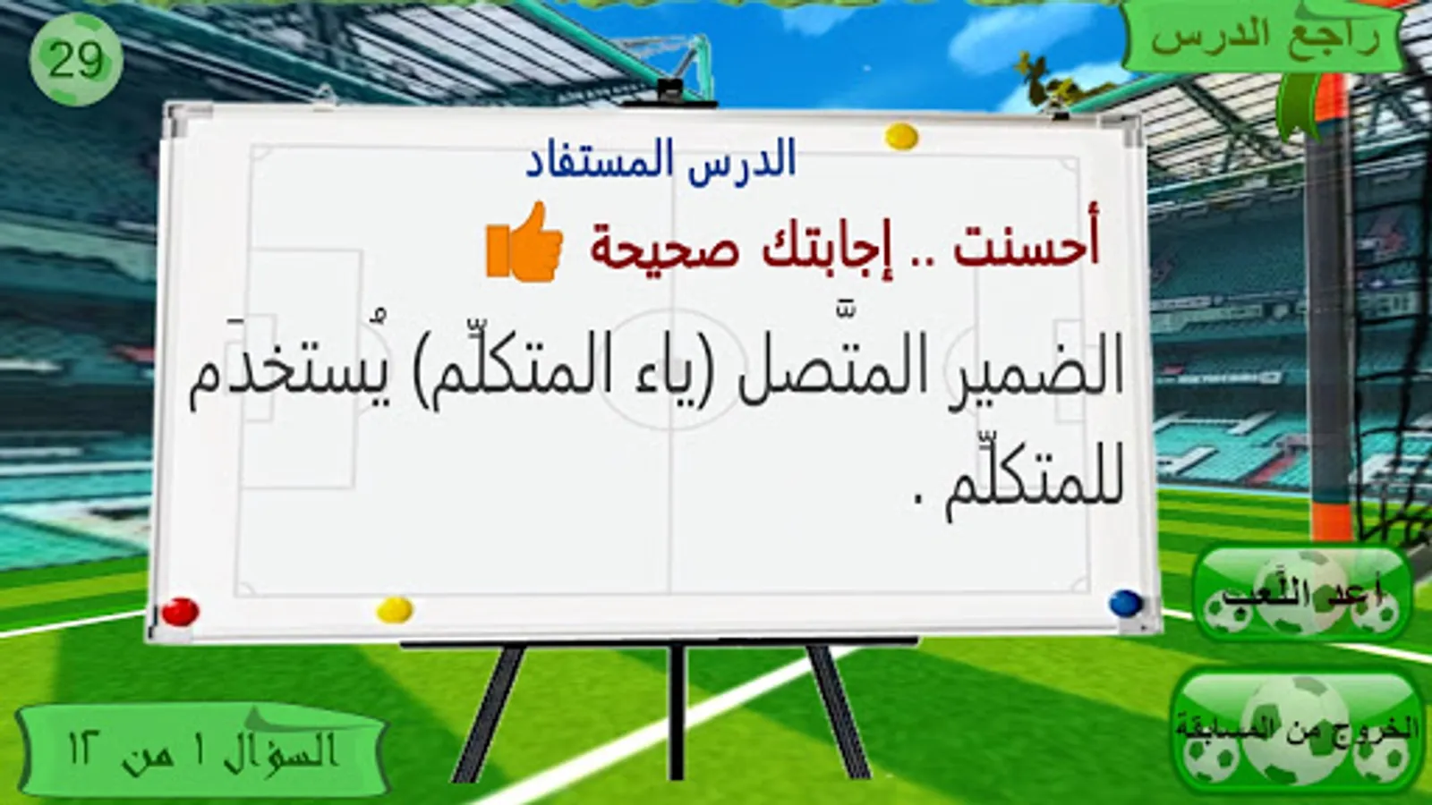 The game covers everything related to the study of Arabic pronouns of all kinds (separate and connected).