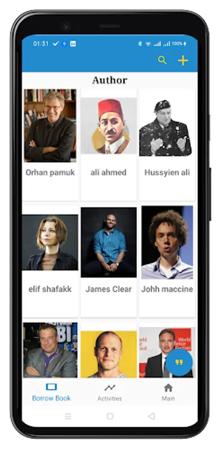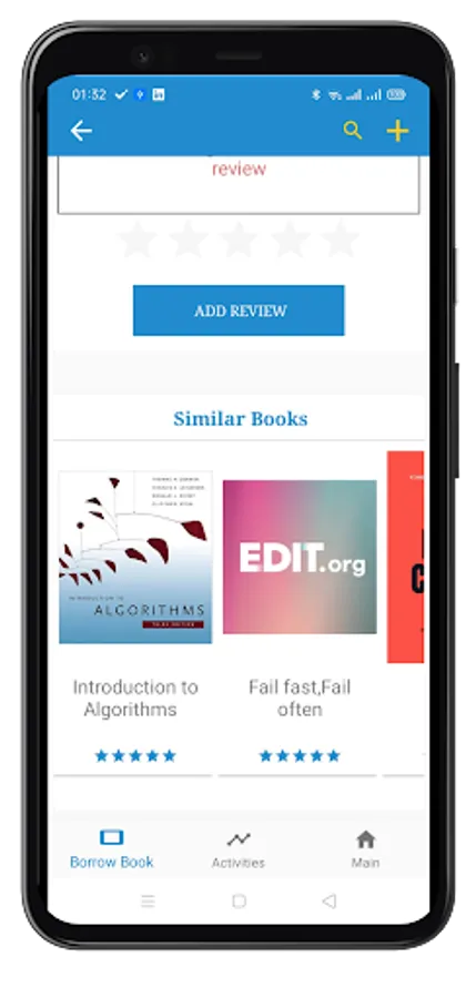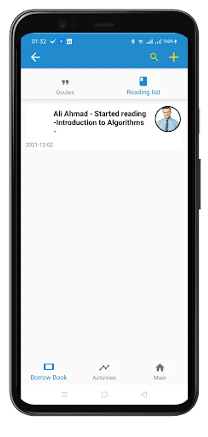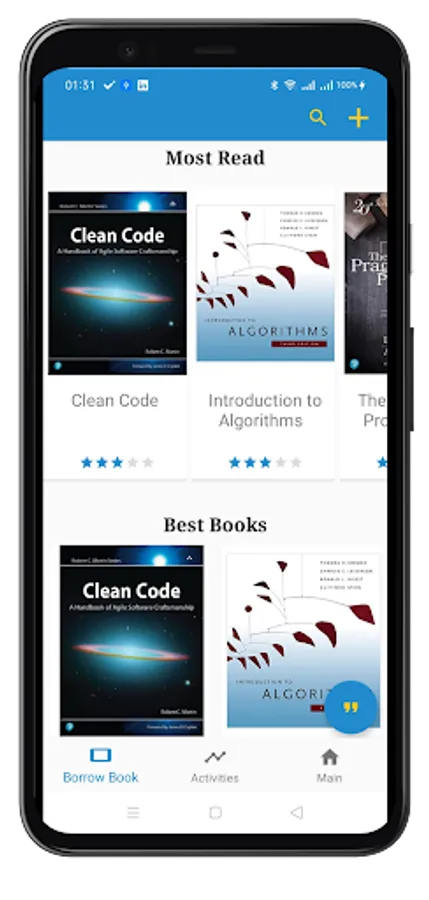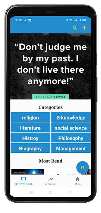 The application is also in an interaction section that allows users to publish their reviews of books and quotes