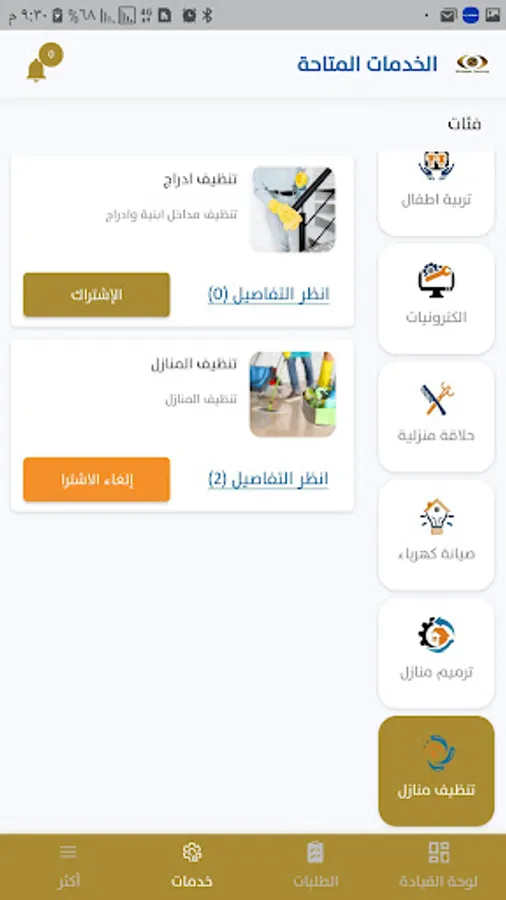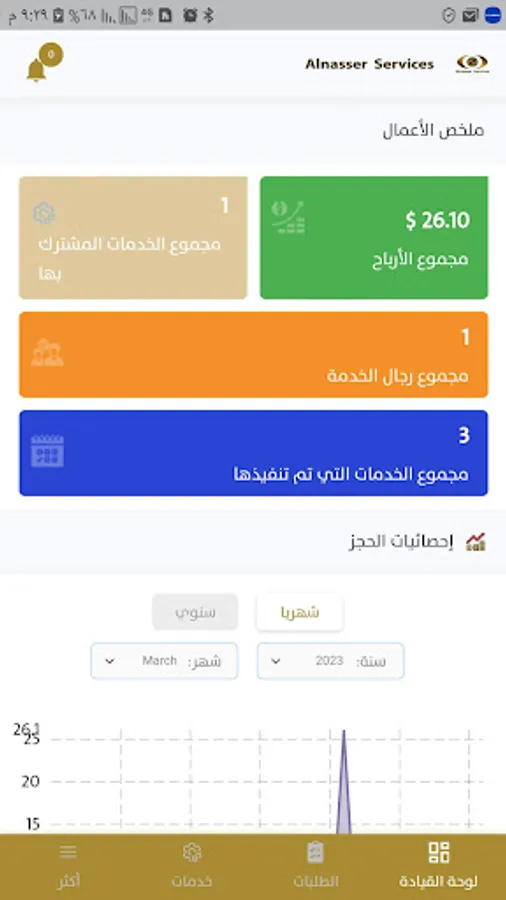 تطبيق مخصص لمقدمي الخدمات (مدراء الخدمات) لتطبيق النصر للخدمات