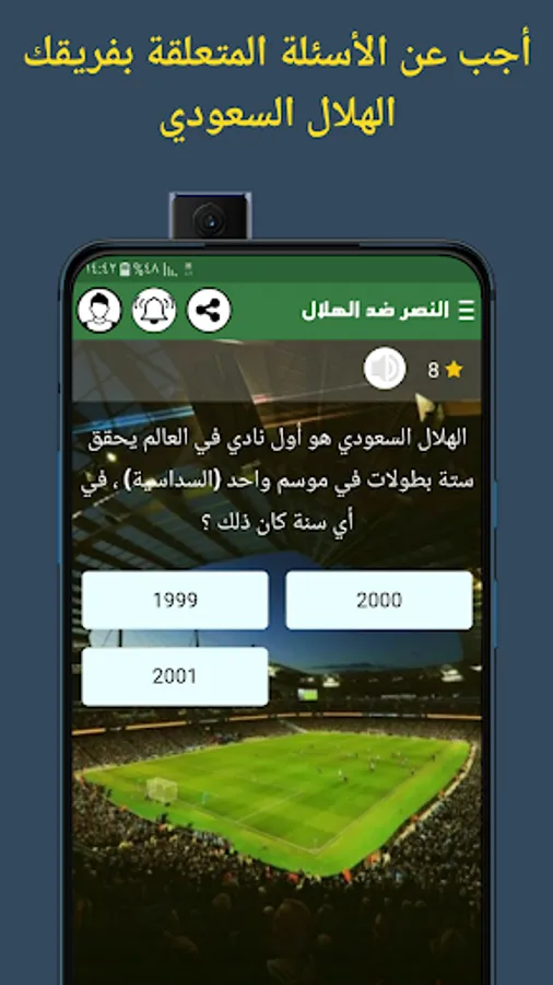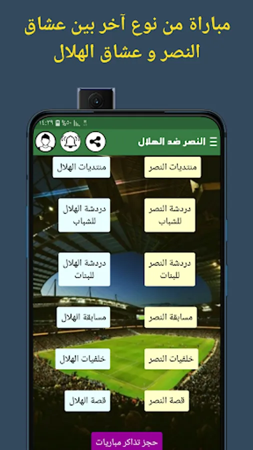 It is an application directed to the fans of the two rivals, Al-Nasr Saudi Arabia, Ronaldo and its traditional opponent, Al-Hilal Saudi Football Club. The games of Al-Nasr and Al-Hilal for intelligence are divided into two parts: a section for Al-Nasr fans and another section for Al-Hilal fans, and the two sections contain football groups and chat rooms For both parties, in addition to the football competition game, a global challenge that includes questions for each team separately, and Al-Nasr fans can download Saudi Al-Nasr wallpapers Cristiano Ronaldo. Rather, the audience program I want to play Al-Nasr and Al-Hilal also includes a club story section, and it talks about the history of each player separately.