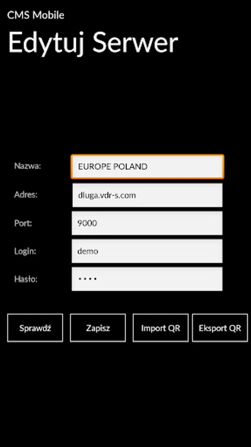 CMS Mobile allows you to control a PTZ cameras with zoom options, easily adds new servers using QR codes, store server list in One Drive cloud service for backup and set advanced alarms triggered by motion on any chosen camera.