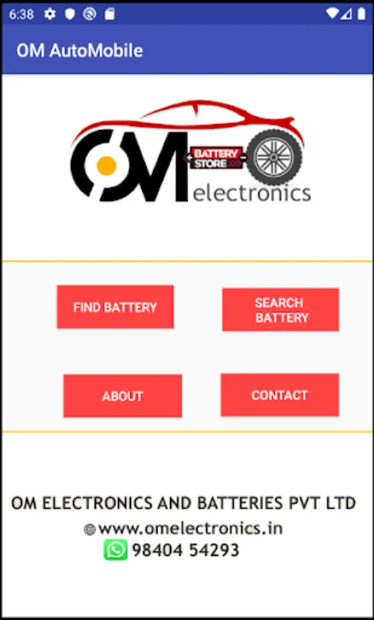 Om Electronics Automobile Batteries Application - This Application is used to view all automobile battery prices for all kind of vehicles , Two wheeler , three wheeler , Car , SUV , Tracker , Heavy Load vehicles. Users can search batteries using vehicle name