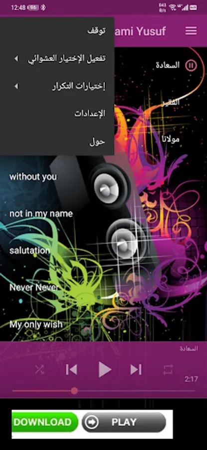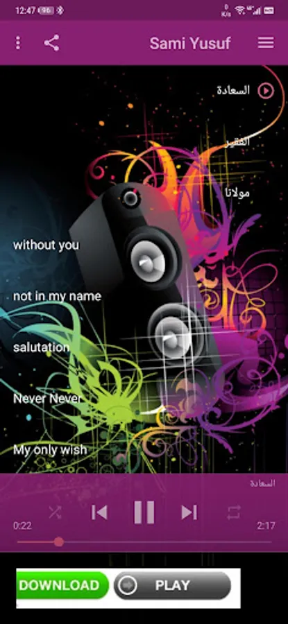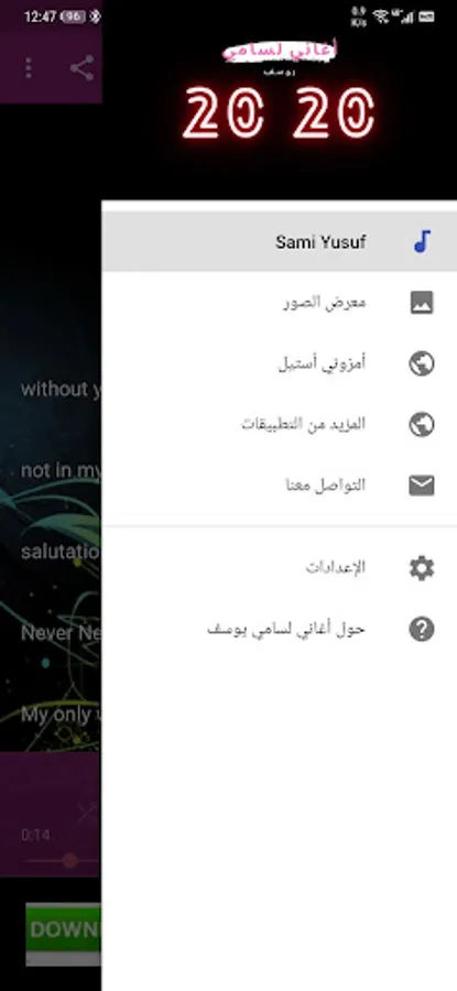 The application also contains pictures of the great and creative artist who depicts a picture of beautiful songs. Indeed, this application is songs for Sami Yusef, one of the most wonderful applications that I have implemented. Don't just wait, download now and listen to beautiful songs.