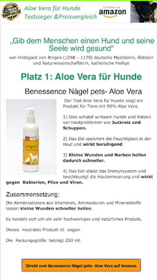 With this app you get all the information you need to know about aloe vera for dogs: worming, dental care, paw care etc.