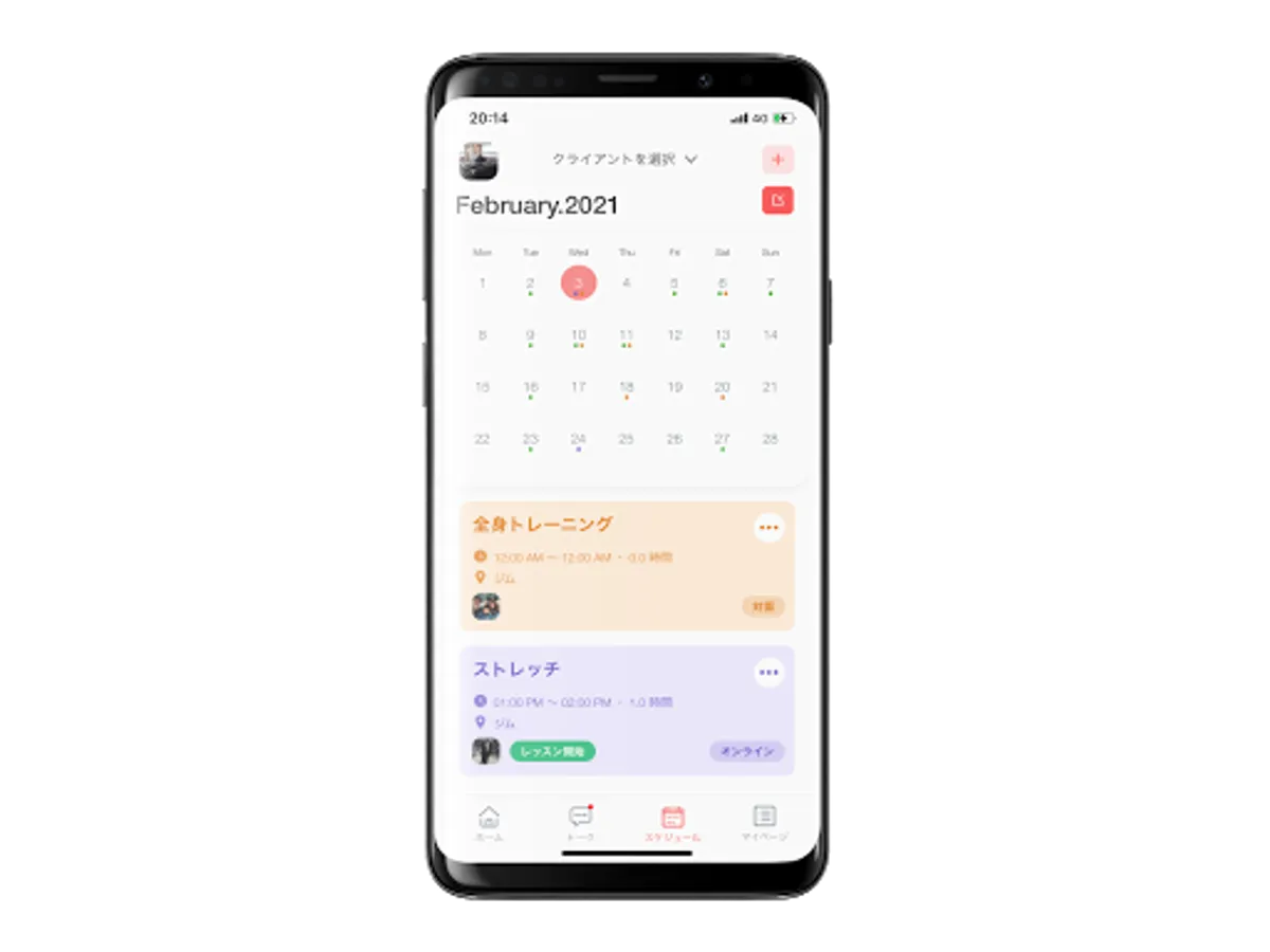 ■ Schedule management function Manage client schedules collectively. View homework, online lessons, and face-to-face lessons together to better manage your client's training.