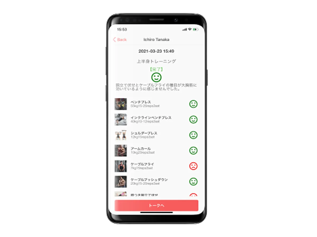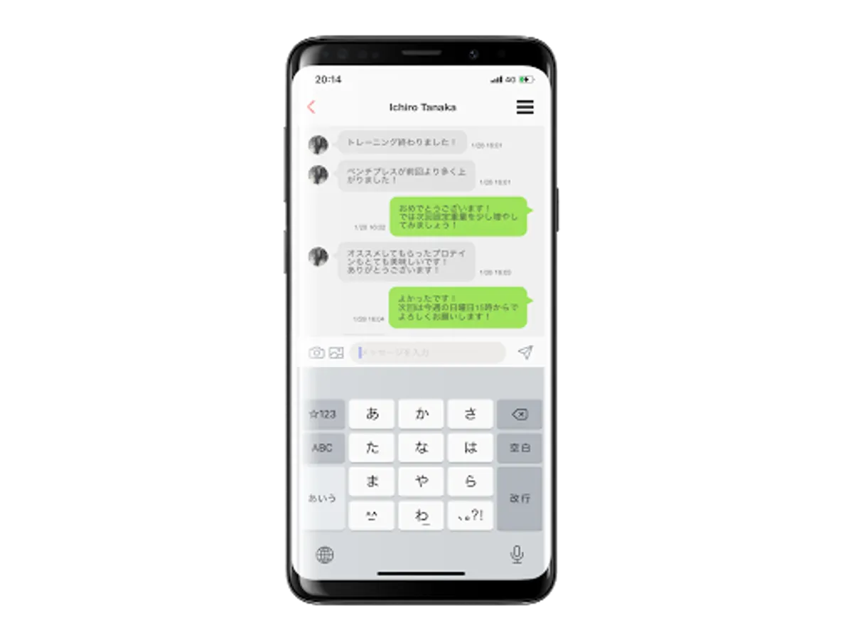 ■ Talk function Let's communicate smoothly with clients with the chat-style talk function. Feel free to exchange information about training content, schedules, meals, etc. _____________________________