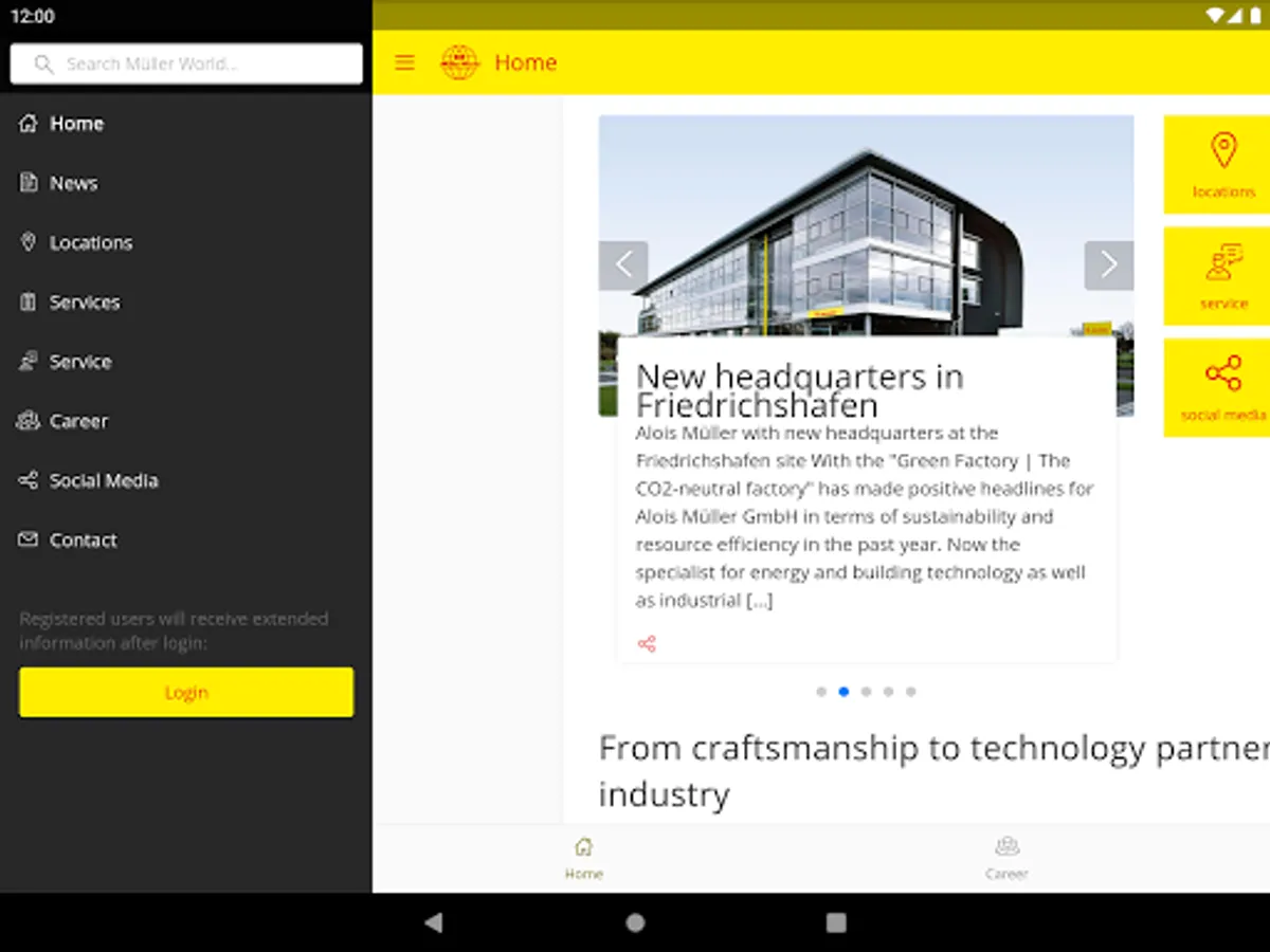 The Müller-World-App offers employees, customers, partners and interested users the most important topics and information about the company: