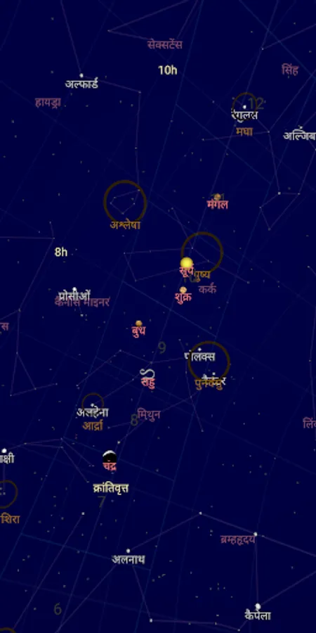 Indian Sky map shows you the map of the sky in Indian Locale along with all the nakshatras, their boundaries and rashis.