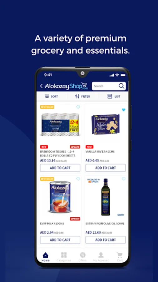 The AlokozayShop App lets you easily navigate various grocery items sorted into categories with an elegant user interface. With the search bar, you can quickly find the products you are looking for within milliseconds. And you can also sort the products by price or filter by category for a hassle-free online grocery shopping experience.