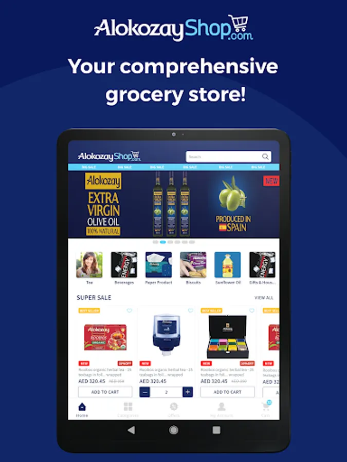 The AlokozayShop App lets you quickly find all your daily essentials in one place. We offer a wide variety of groceries & households, including Premium Tea, Facial Tissues, Kitchen Towel, Bathroom/Toilet Tissue Rolls, Baby Diapers, Baby Wet Wipes, Beverages, Face masks, Biscuits, Cooking Oil, Detergents, Hand Sanitizers and many more, all available at the best prices.