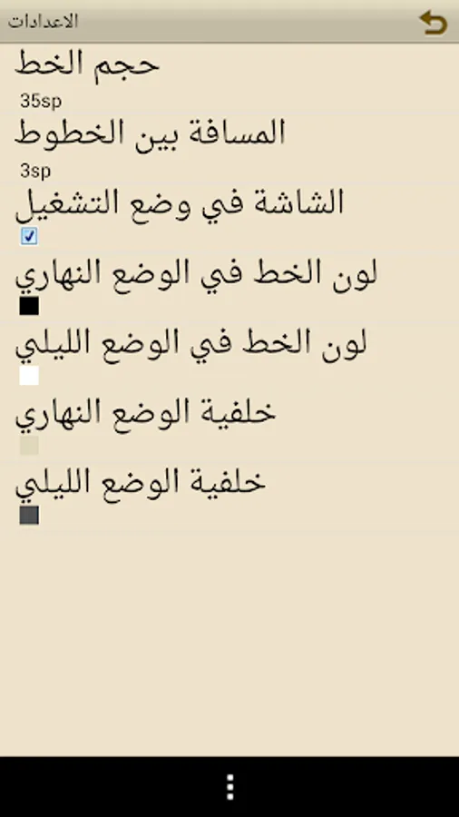 5. possibility of amending the line (small / large), as well as property modifying the background color and also a choice between reading a property or night in the daytime.