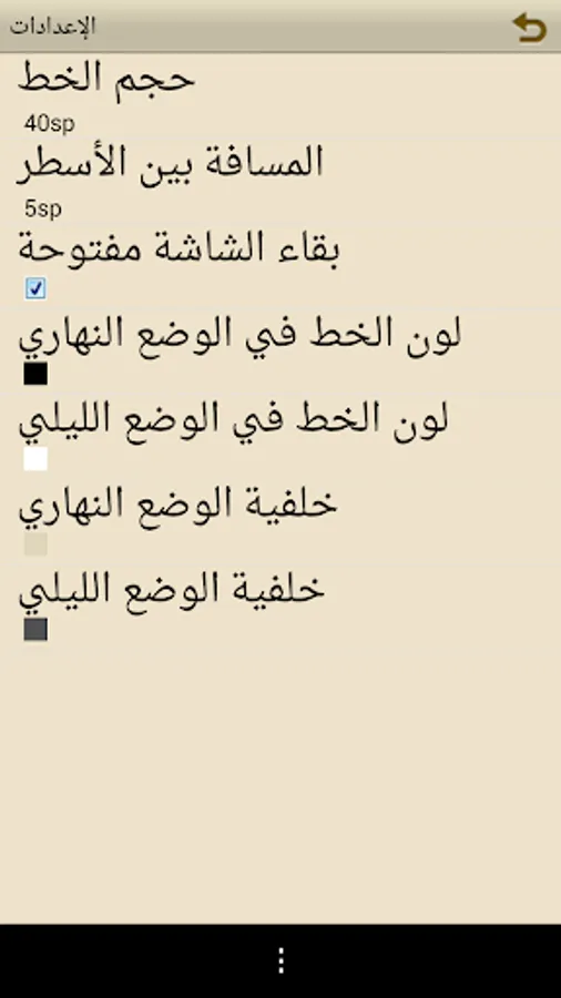 5. possibility of amending the line (small / large), as well as property modifying the background color and also a choice between reading a property or night in the daytime.