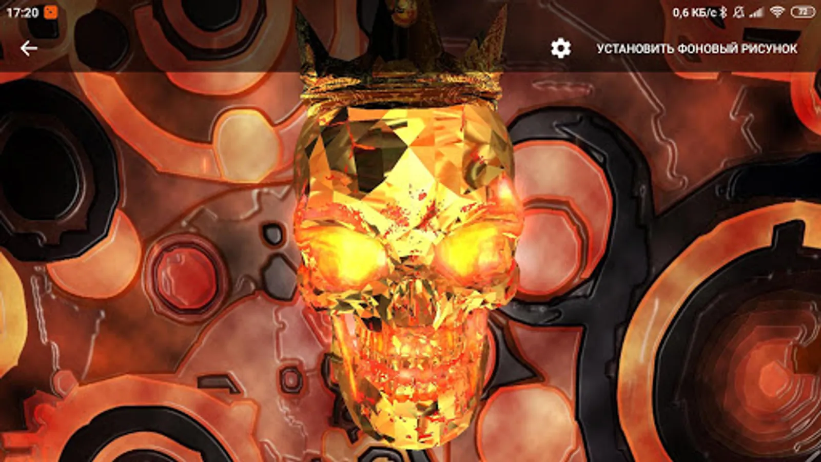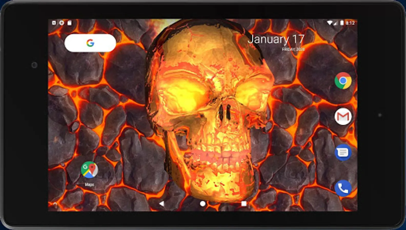 Live wallpaper with a scary burning skull made in 3D. The skull is constantly in flame, exhales the flame, follow by your touch on the screen. 13 different settings are available for customization! Cool shuffled animations!