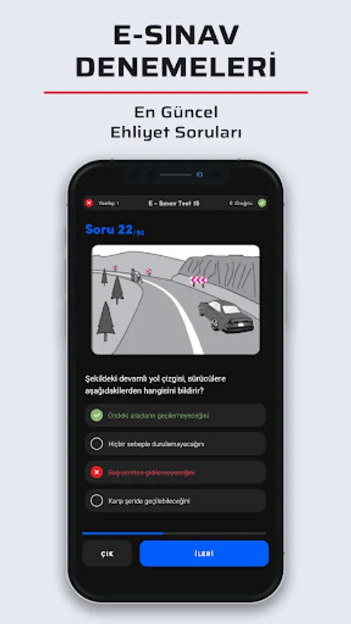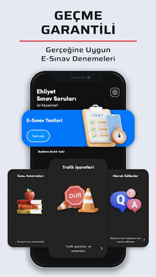 The Driver's License Exam has been held for many years. Regardless of the driver's license type, sufficient knowledge must be proven in the theoretical driver's license exam. Those who will get a new driver's license should be prepared not only with the theoretical lessons, but also with the questions of the driver's license exam. Well, we seem to hear you say where to find the driver's license exam questions from the past years. Answer E Driver's License Exam Questions 2023 application! With our application, you can reach all kinds of information you are wondering about Written License Exam, Driving Course, Driver's License, Driver's License Questions, Traffic Signs and Steering Exam, and you can prepare yourself for the exam in the most appropriate way.