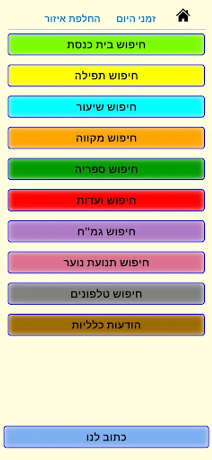 The Detinfo application centralizes useful information on various topics for the religious public in the various areas of the country, including details of synagogues, prayers, lessons, mikvahs, libraries, committees, huts, youth movements, important telephones and general announcements.