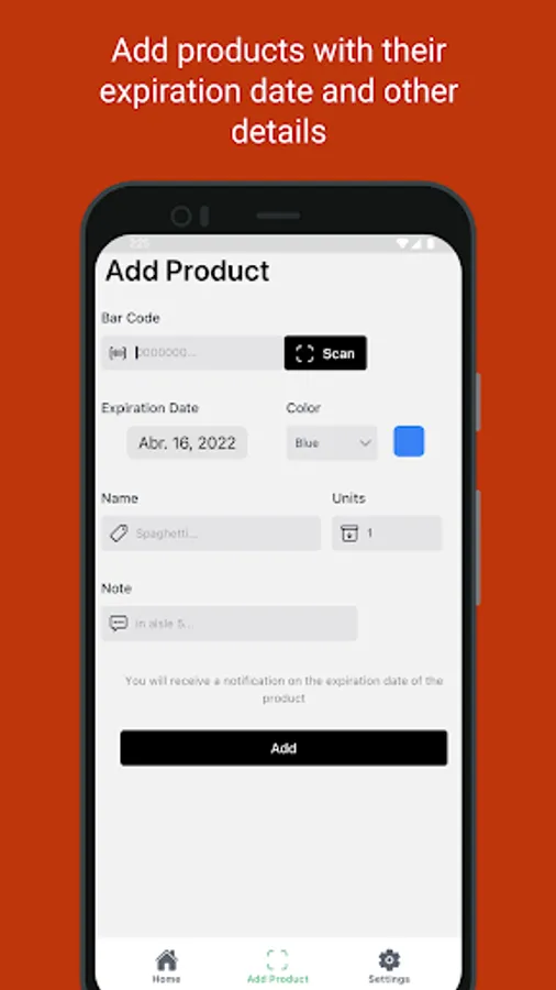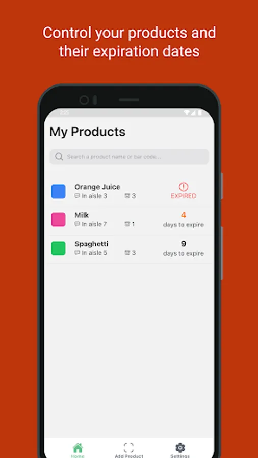 In a couple of seconds you can scan any type of barcode and add your product file and control its expiration date