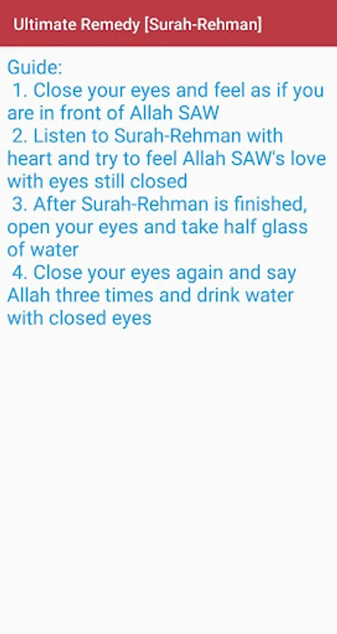 3. After Surah-Rehman is finished, open your eyes and take half glass of water