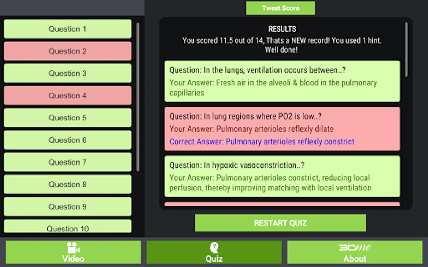 This 3Dme App has primarily been produced for undergraduate medical, physiotherapy, health science, nursing, pharmacology, exercise science & veterinary science students to assist their understanding of this fundamental curriculum-based topic. It is one of the core concepts which the student needs to understand if they are to successfully understand subsequent respiratory physiology concepts. This App is also suitable for the university lecturer who could “airplay” the video to their students, followed by a discussion on the Q & A. They may also choose to use the Q & A to examine their student’s level of understanding. This 3Dme App will also appeal to health professional graduates working in the field of respiratory physiology who may like to refresh their memory on the fundamentals of respiratory physiology. Additionally, a portion of proceeds from the sale of each App will be returned to Griffith University to fund ongoing innovative teaching & learning initiatives.