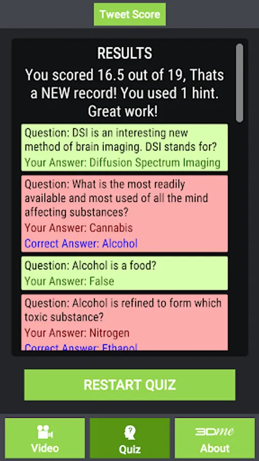 After viewing the video, to assist your understanding of this topic, you can complete a Quiz consisting of 20 multiple choice questions. The Quiz includes an optional "Hint" button which enables you to review the portion of the video related to the question. However if a "Hint" is used to answer the question, the maximum score out of 1 for a correct answer will be 0.5. You also have the option to Tweet your results to others.