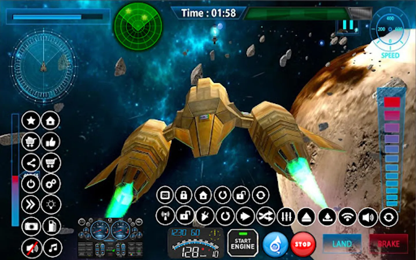 Become a captain of spaceship, drive your rocket carefully and have fun playing this spaceship simulator and reach to the moon ! Control the space rocket and do your best to land it at the surface of the different planets as smoothly as you can! Be the most accurate pilot and just enjoy! This simulator displays you the structure of a spaceship, space shuttle.