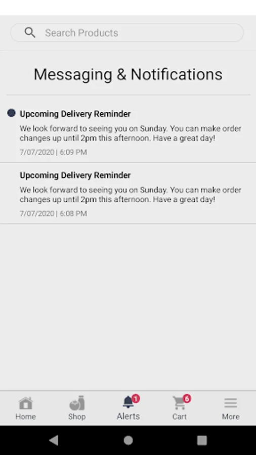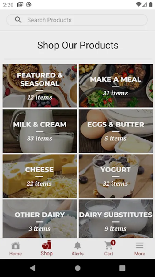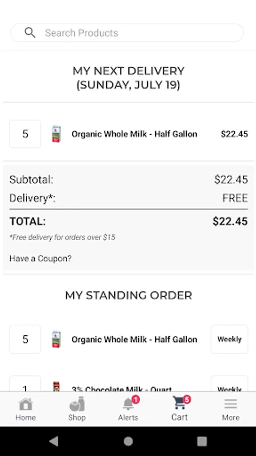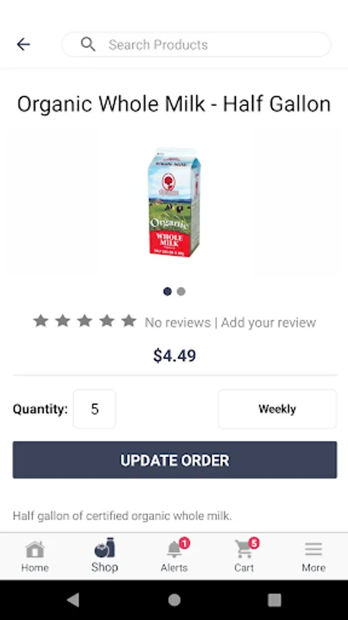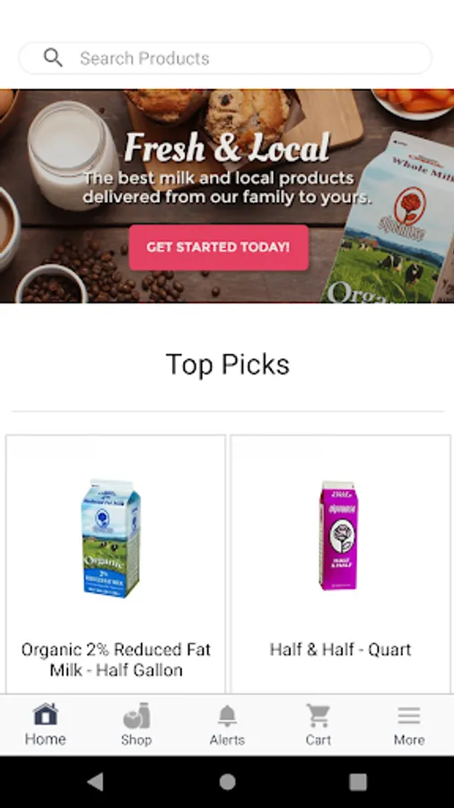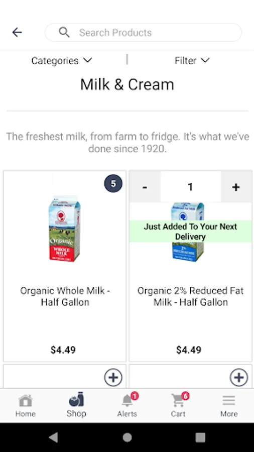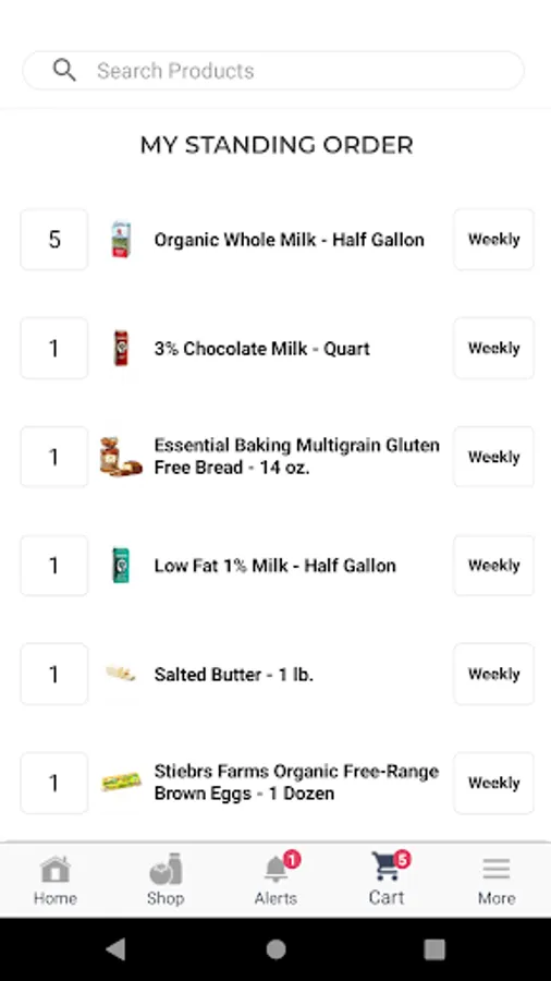 The Alpenrose app lets you browse our catalog, add products to your order, and manage upcoming deliveries to optimize your weekly grocery needs.