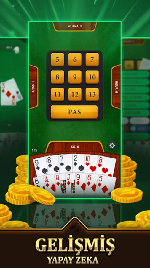 Download batak from Google Play with Batak, one of the most popular card games, renewed graphics, improved artificial intelligence, 3-5-8 Batak, 3 - Embedded swamp, no tender (trump spade) swamp, auctioned swamp and paired swamp.