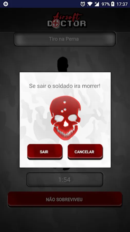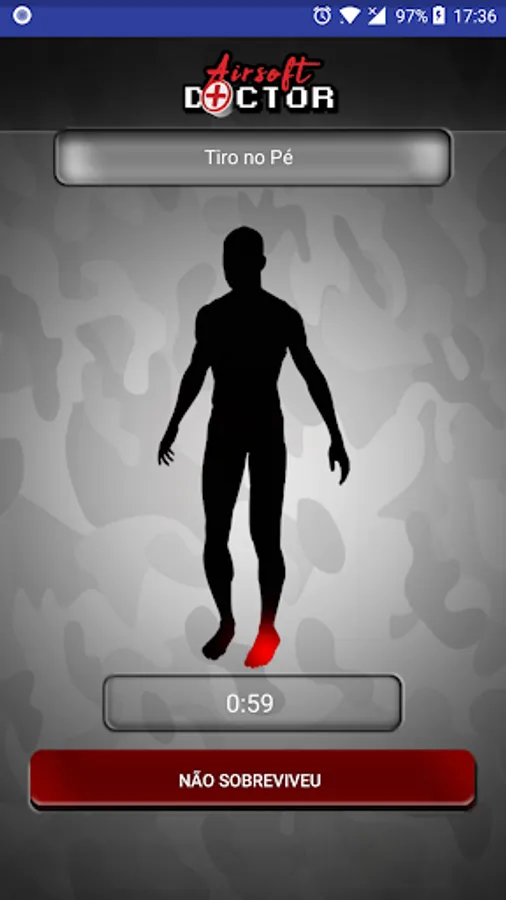 Application to be used by the doctor during an Airsoft game. The application generates the injury and according to it, shows a timer, with the recovery time.