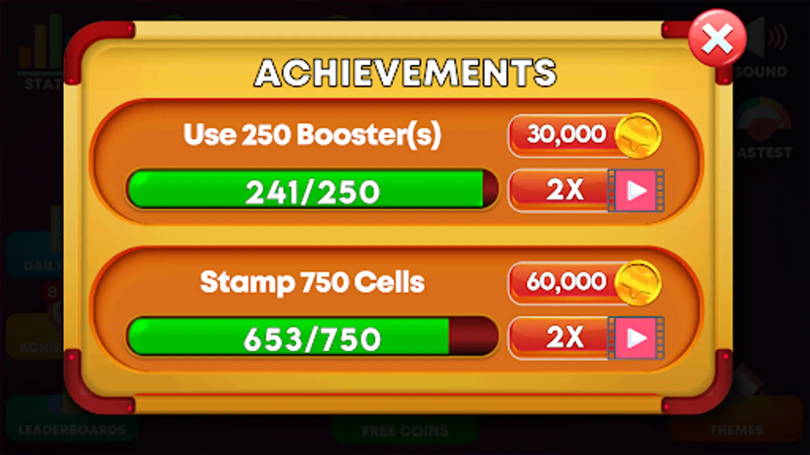 🏅 Achievements: Earn bingo achievements by completing various bingo challenges and milestones in the game. From winning your first bingo to completing a full bingo card, there's always a new bingo achievement to unlock.🏆