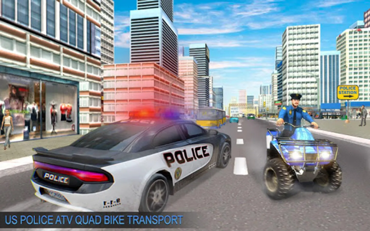 US police games are for all users whether you're adult or child so you don't need to download kids police atv games separately because you will get police parking car game and police car driving game in a single Moto ATV bike transport game. US police atv quad is very interesting and challenging police patrol car driving simulator where you have to reach the destination of atv transport truck with in the limited time if your police patrol not reach on parking spot within the specified you will fail to complete police car driving and atv transport mission in quad games. Every police cars game mission is more addictive then previous atv games levels so drive atv transport truck and us police atv quad as fast as you can to reach police parking area to complete us police atv quad bike transport mission. Police car driving simulator give you variety of police car truck, jeep and other vehicles for driving through the city roads. Unlock your favorite us police atv quad to become best kids police atv games player. Enjoy police cars game and share your performance in police car transport with friends to prove that you are expert in quad games.
