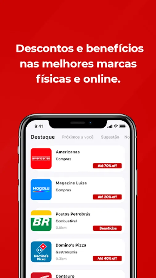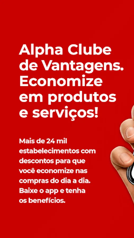 Alpha gives you discounts on online purchases and physical stores all over Brazil. With the app of our Club of Advantages, you access the main brands of the country and use the discount when paying, in an easy, fast and free way.
